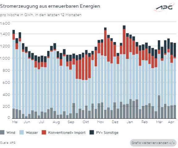 Ökostrom-Überschuss im April
