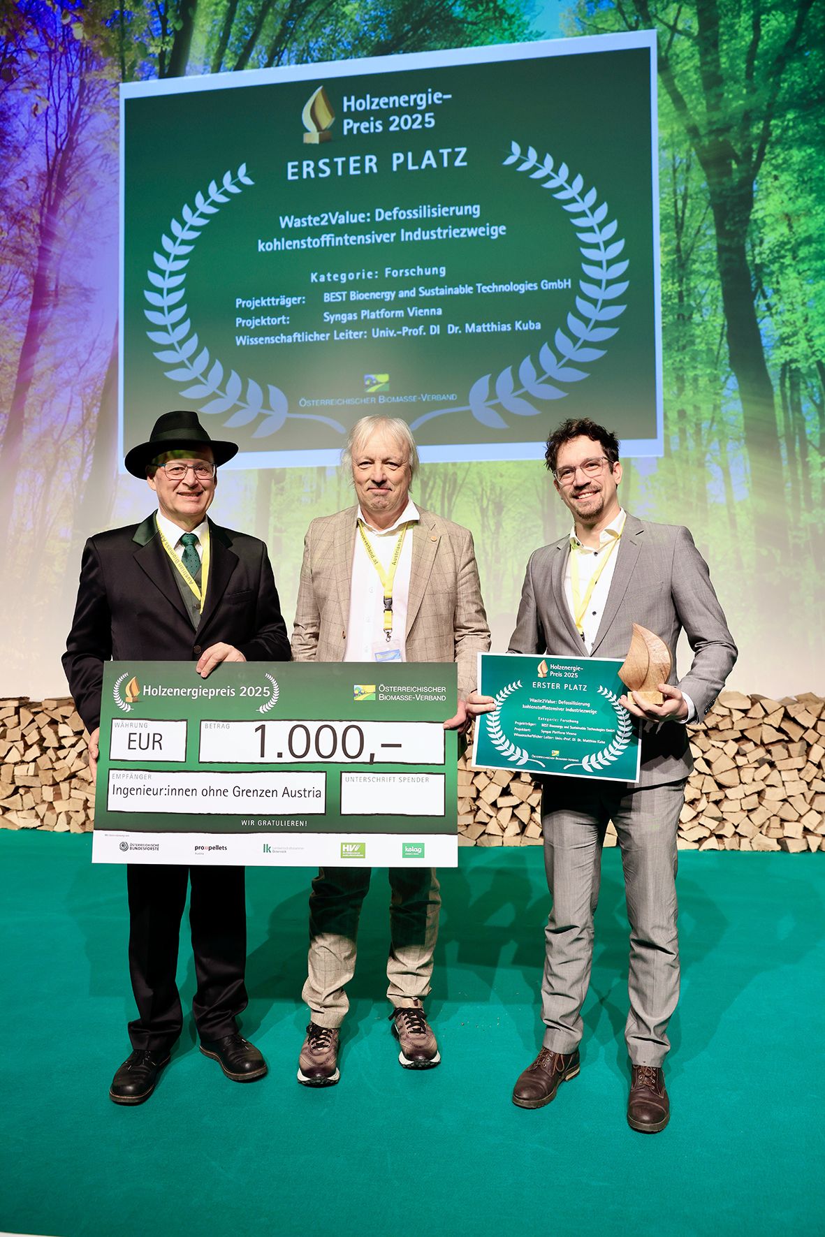„Seit September 2025 läuft in Dornbirn ein echtes Pionierprojekt: Die erste landesweite Anlage zur CO2-Abscheidung aus einem Biomassekraftwerk ist in Betrieb. Sie fängt Kohlendioxid aus den Abgasen des Holzkraftwerks ein und macht daraus einen wertvollen biogenen Rohstoff für regionale Betriebe. Dafür wird die EnergieWerk Ilg GmbH mit dem Holzenergiepreis 2025 in der Kategorie Hackschnitzel ausgezeichnet“, begründet Andreas Steinegger, Präsident der Landwirtschaftskammer Steiermark, anlässlich der Verleihung. „Das Projekt ist weltweit einmalig und wegweisend. Das Kraftwerk erzeugt aus dem regionalen Energieträger Hackgut gleichzeitig Strom, Wärme, Pflanzenkohle und flüssiges CO2. Dabei verfolgt es einen ganzheitlichen Ansatz, der Nachhaltigkeit, Kreislaufwirtschaft, Dekarbonisierung und Negativemissionen miteinander verbindet.“
