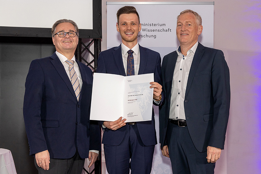 Jedes Jahr vergibt das Bundesministerium für Wissenschaft und Forschung (nun Frauen, Wissenschaft und Forschung) Würdigungspreise für die besten Diplom- und Masterabschlüsse des Landes. 15 Absolventinnen und Absolventen von Fachhochschulen bzw. Hochschulen für Angewandte Wissenschaften werden prämiert. Eine der mit 3.000,– EURO dotierten Auszeichnungen ging diesmal an Andreas Loschy, Absolvent des Masterstudiengangs Nachhaltige Energiesysteme der Hochschule Burgenland in Pinkafeld.